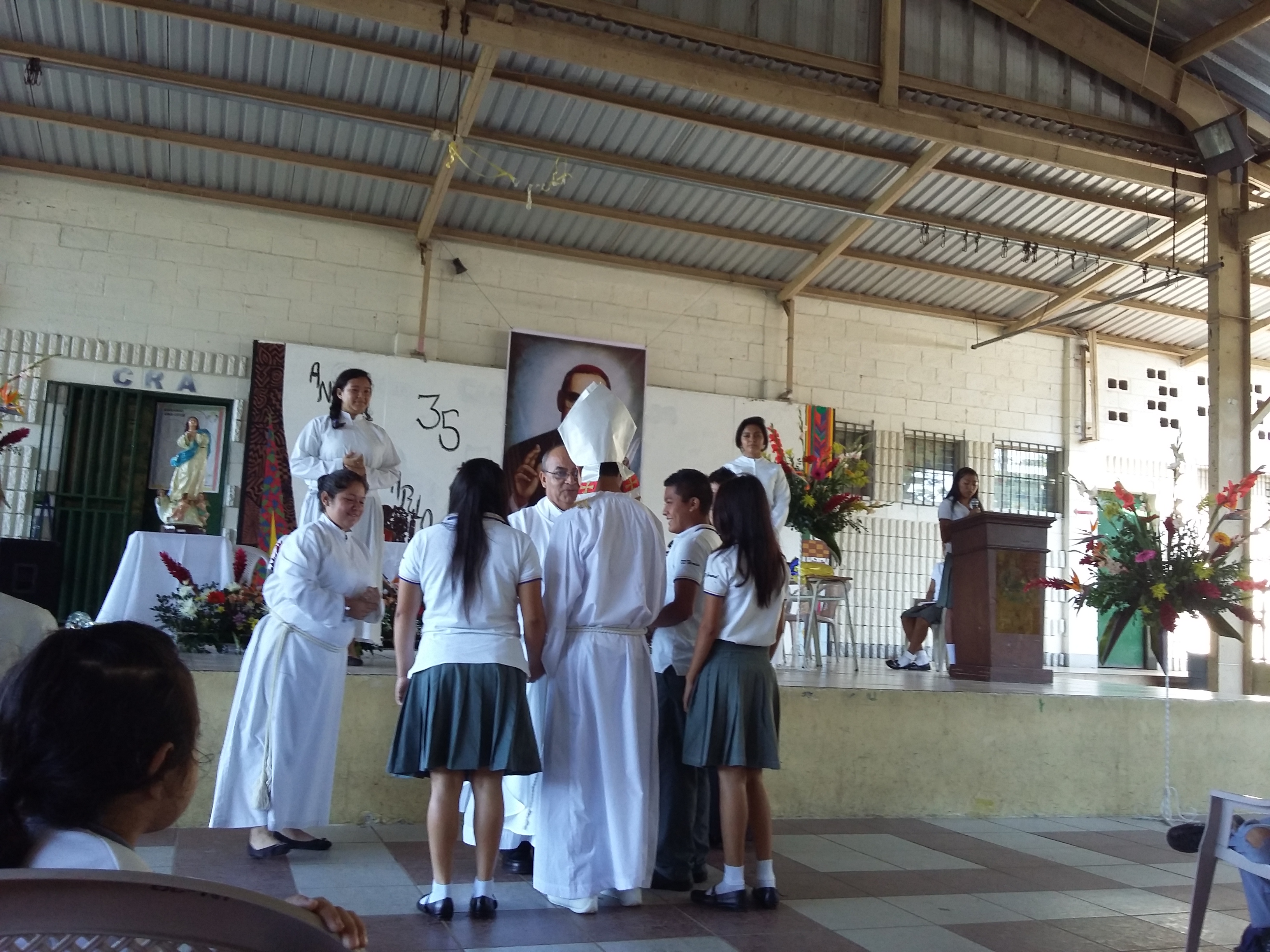 Honoring these incredible 35 years of service to the children and families of El Salvador, the COAR school held a special 35th Anniversary Celebration on August 14th (one day before our official anniversary). The program began with a school-wide Holy Mass. The entire staff of COAR Children’s Village was invited to the ceremony. There was folk dancing, cultural activities and a skit in which COAR Children’s Village graduating senior (and great kid) Juan Carlos played the role of Archbishop Romero. The celebration ended with a trivia contest by class focused on cultural, historical and academic questions. After the celebration, there were athletic events all afternoon.