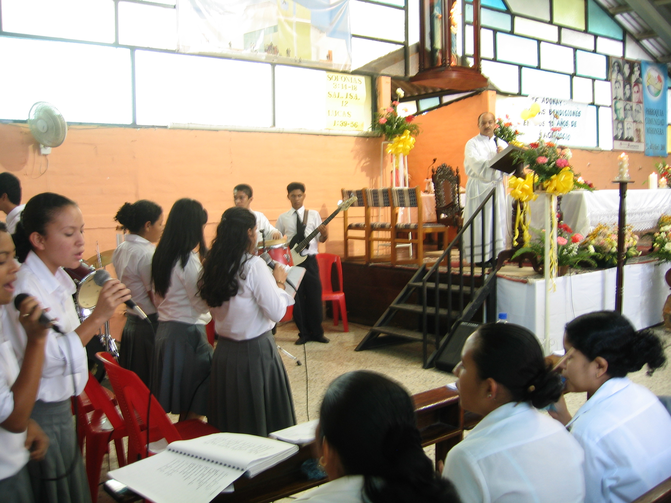 Whether you like to sit and strum a guitar with your friends, or praise God through music during Mass or march in the marching band; or play the latest pop, salsa or regaetton hit to your screaming teen fans, there is a place for you at COAR.  The students at COAR’s school, 900 or more each year, are more diverse than you can imagine.  The school has grown from educating the COAR residential (foster care) children into the parish school for Zaragoza and the surrounding cantones (villages).  Whether the kids come from poor families who live in shacks with dirt floors and corrogated metal panels or from one of the newer gated communities, there is a great variety of musical talent to be nurtured.