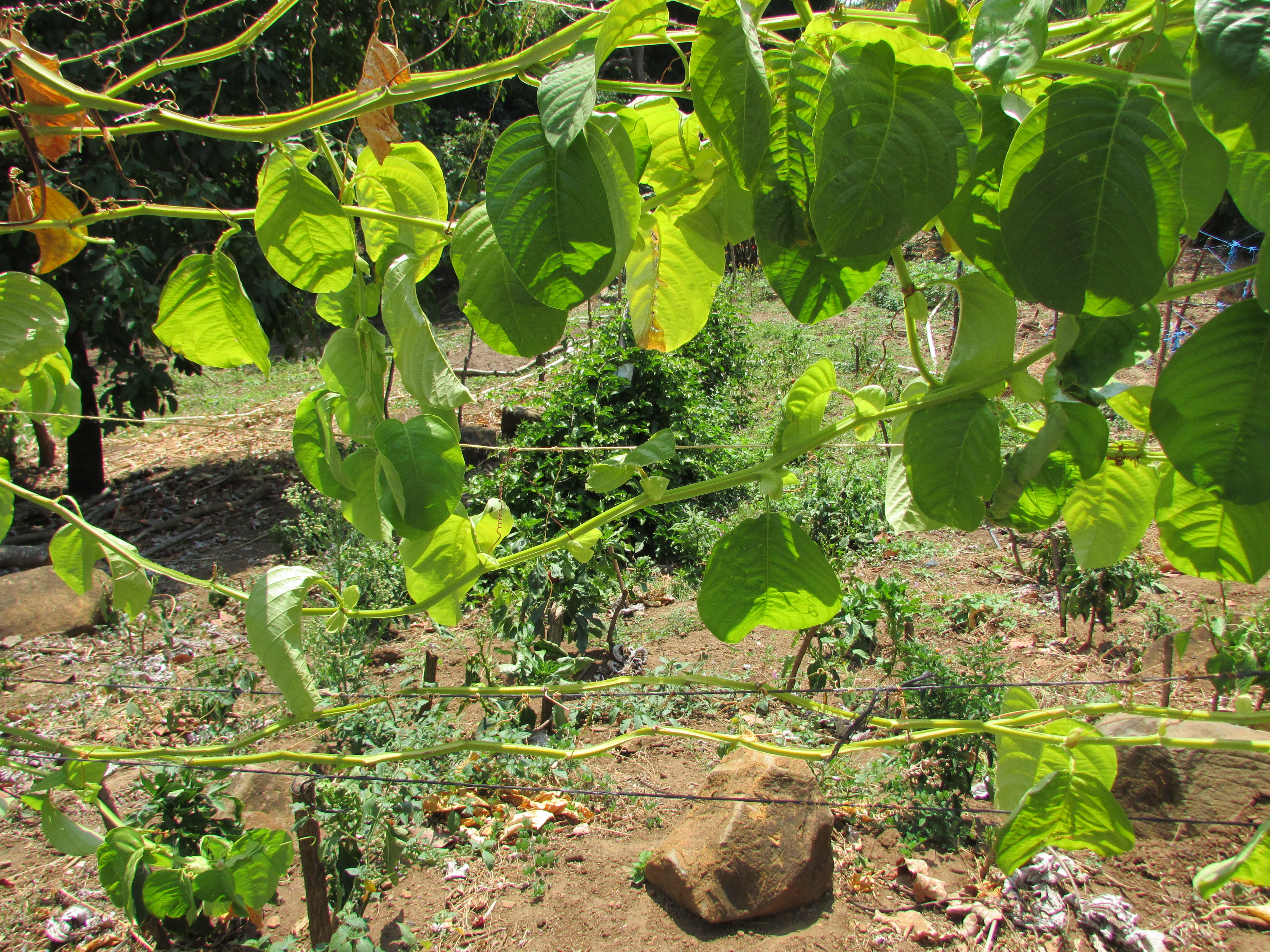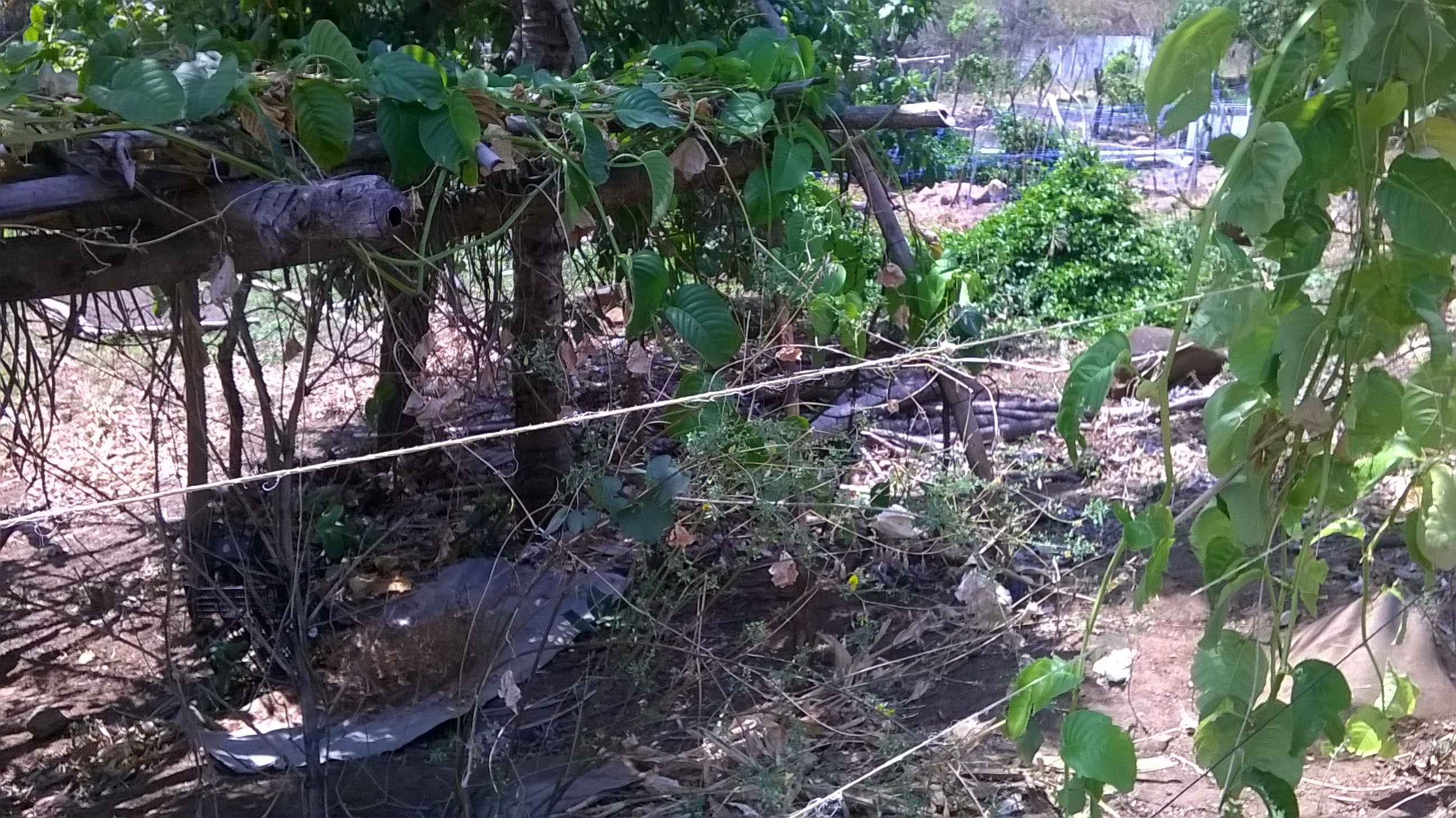 But, how do you grow vegetables in a land where there is literally no rain from October until May? The answer was simple and affordable: drip irrigation. The kids collected 2-liter pop bottles from the trash, inverted them, attached them to stakes and poked a tiny hole in the cap. Drip by drip, day after day, the soil directly under the bottle remainded moist – giving life to the seedlings and plants. You didnt have to invest in an irrigation system. You didnt have to pour gallons upon gallons of water out of traditional watering cans. One only had to refill a 2 liter bottle a couple of times a week to supply enough moisture to support plant life. Of course, you also planned your sewing and harvesting around the optimum weather pattern. But, while the rainy season brings all vegetation to life – it is drip irrigation which allows the plants to survive until the rainy season fosters gigantic growth.